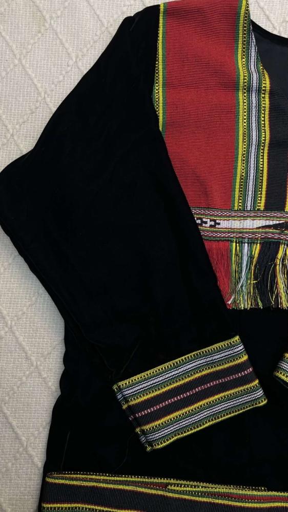 مصنوع من قماش المخمل الأسود الثقيل، ويتميّز بتطريز تقليدي بخطوط طولية ملونة، تضيف لمسة فنية فريدة.