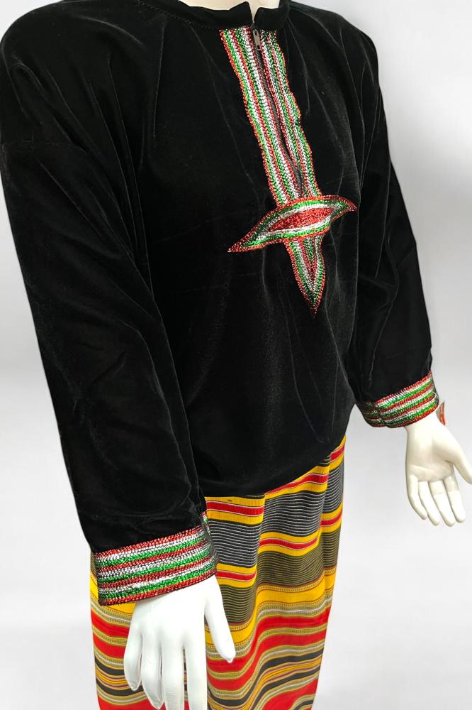 اكتشفوا سحر الماضي مع ملابسنا التراثية للصغار تصاميم فريدة تعيد الحياة للأزياء التقليدية بلمسة عصرية صدره من قماش المخمل مزينه بخيوط السيم الامعه .
